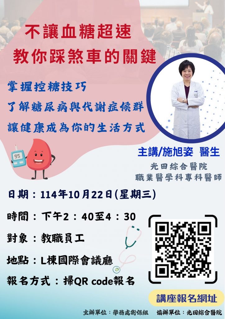 【衛保組公告】健康促進活動-不讓血糖超速,教你踩煞車的關鍵