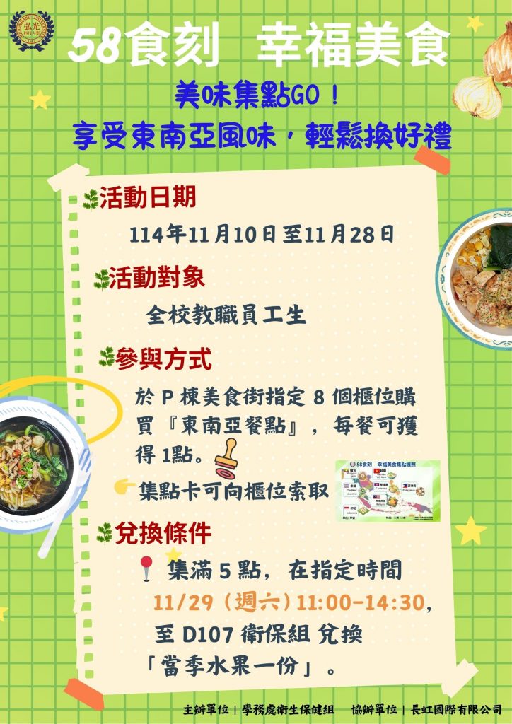 【衛保組活動公告】創校58週年校慶系列活動-58食刻 幸福美食