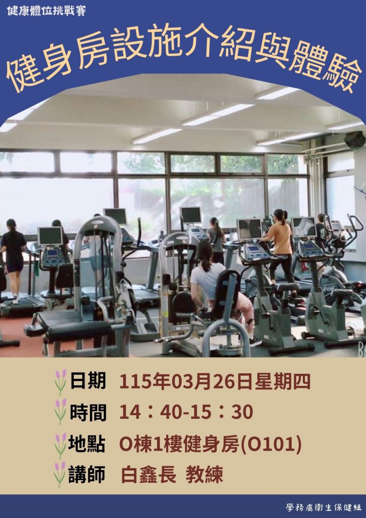 Location: Fitness Center, 1st Floor, Building O (Room O101)